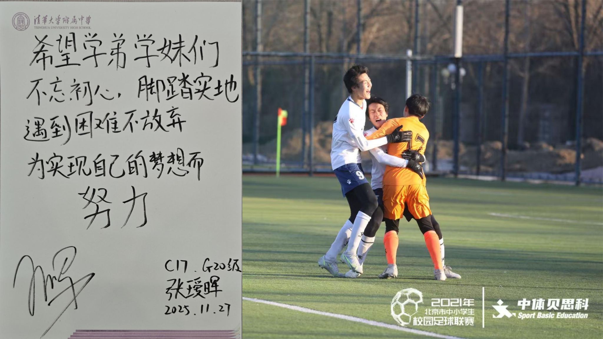 谈及清华附中的体教融合模式,张瑷晖深有感触,认为这是他成长道路上不可或缺的助力。“附中无论在体育还是学业方面,都为学生提供了最优质的资源。体育方面,我们有先进的训练基地和专业的教练团队,他们不仅传授我们足球技巧,更注重培养我们的团队协作精神和坚韧意志;学业方面,则拥有一流的师资和教育环境,让我们在追求足球梦想的同时,也能在学术领域不断探索。”这种全面而优质的培养方式,让张瑷晖在足球和学业上都取得了优异成绩,为他的长远发展奠定了坚实基础,也让他深刻体会到清华附中精神在体教融合中的独特魅力与强大力量。