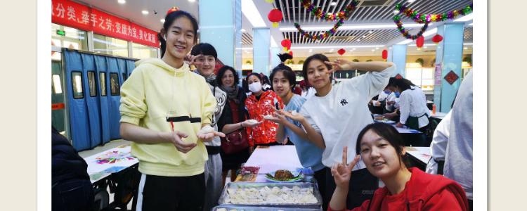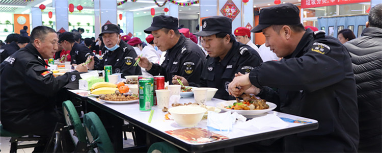 学校食堂里张灯结彩,喜气洋洋。校领导和留校师生员工们一起包饺子。和面、擀皮、备馅、包饺子,大家分工合作,有条不紊,乐趣盎然,年味浓浓。