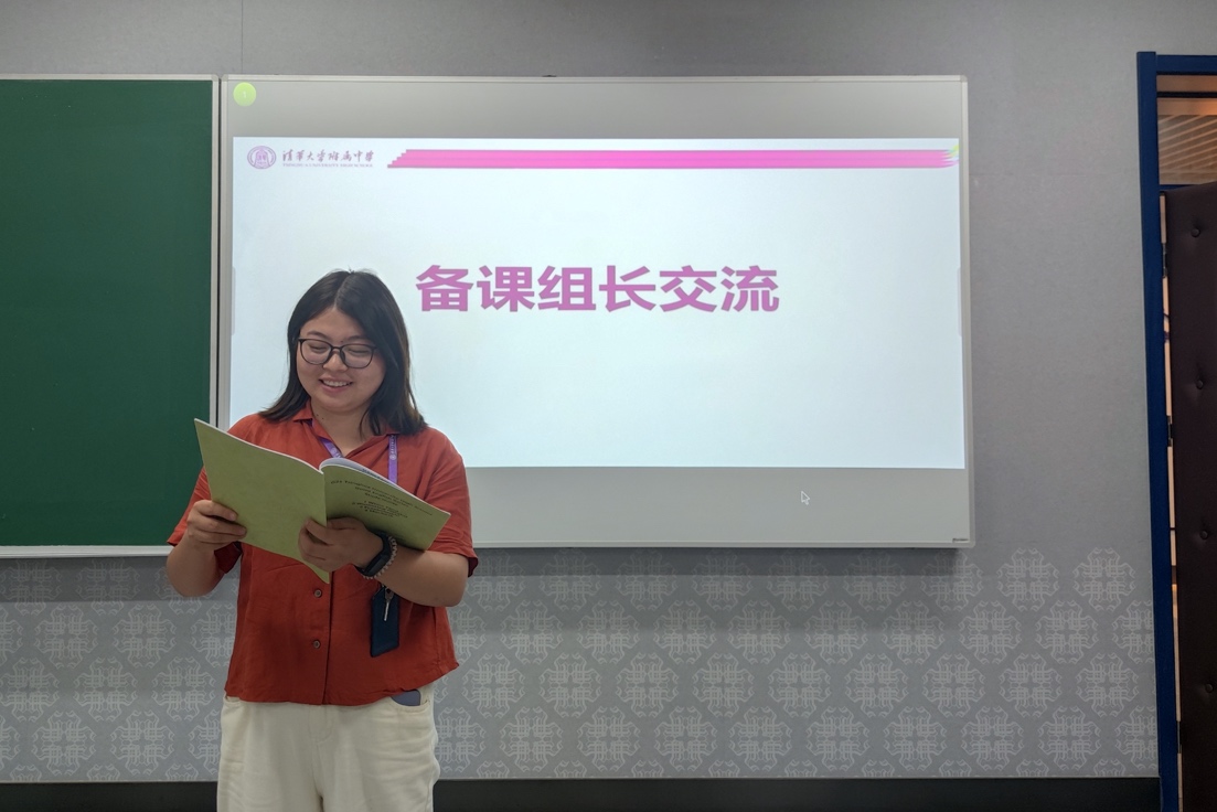高一年级备课组由杨欣代替组长为大家介绍了新高一备课组的成员构成,工作重点,特色学科活动。基于学生来源的多样性,高一的工作重点是上学期做好初高中过渡衔接;大力加强学生非应试听力、和口语水平;加大学生泛读量并给予切实有效的阅读指导。本学期特色学科活动英文书法比赛将于10月15日全年级同时举行、配音大赛暂定于12月、素养大赛根据比赛的时间和阶段,将分别举办已备演讲和即兴演讲比赛。