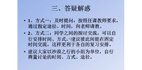 针对开学以后特殊时期的停课不停学、网络线上授课的新挑战,班主任对学生进行学法指导和心理疏导。引导学生如何积极地面对接下来的学习,如何从技术上高效实现线上学习,如何调整心态戒骄戒躁,如何锻炼身体提高抵抗力。
