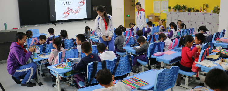 四个班级的授课内容和授课方式各有千秋,课堂氛围非常活跃。小同学们个个热情高涨,积极举手回答问题,并在助教小老师的帮助下认真完成绘画和手工任务。
