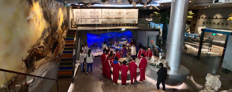 在班主任尹丽娜老师的带领下,天云师生首先来到清华附中生物标本馆参观。李道逸、余羿霏等六位同学进行了昆虫、鸟类和猫科动物标本的讲解,天云的孩子们听的津津有味。