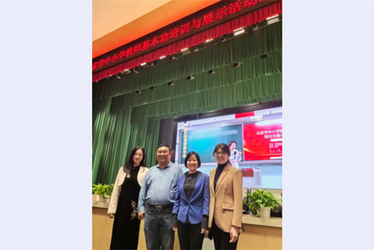 清华附中获奖教师在颁奖现场(左起:汤莉、赵岩(海淀进校中教研主任)、白鑫鑫、李晟宇)