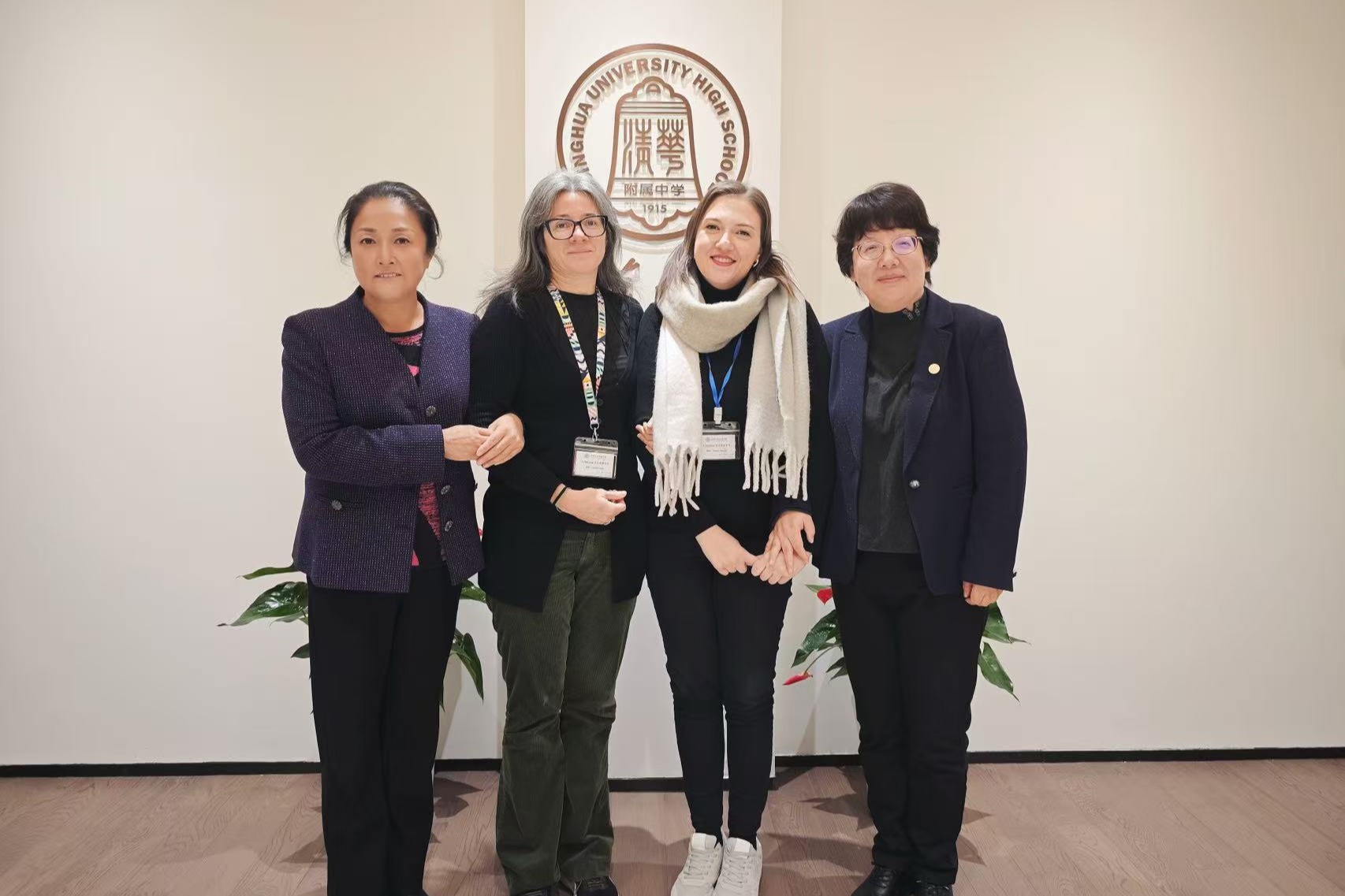 清华附中校长方妍(左一)、副校长张洁(右一)与意大利教师合影