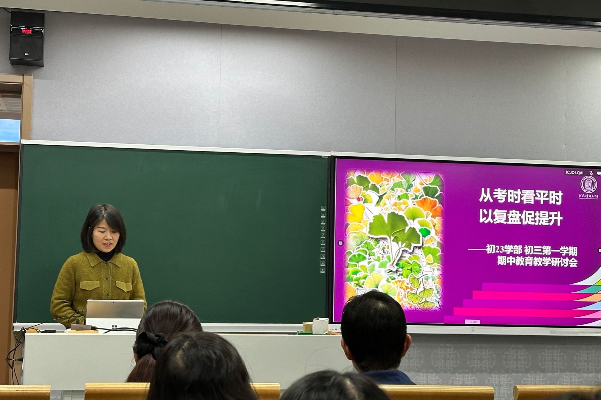 11月15日,为精准复盘期中教学成效,明确后续育人方向,凝聚教育教学合力,初23学部以“从考时看平时,以复盘促提升”为核心主题,召开期中教育教学研讨会。出席会议的有清华附中校长方妍,副校长张洁、徐文兵、张苏、李劲松,教学管理中心副主任张彪、学生发展中心副主任李冰清,初23学部主任张晓琼、副主任周小玲。全体初三教师、班主任全程参与,通过多维度研讨、精准化分析、针对性部署,为冲刺中考筑牢根基。会议由周小玲主持。