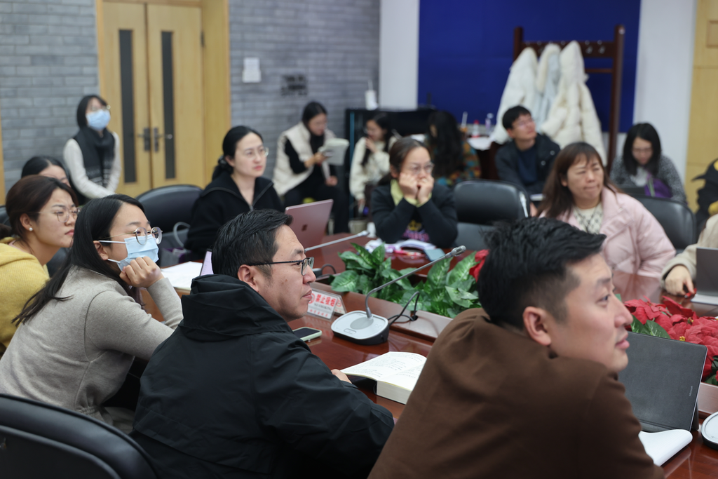 英语备课组长陈彦竹老师则从"学科阶段规划"角度,提出了"明方法、夯能力、重拓展"的教学思路。她介绍了以教材为基础,辅以听说训练、外刊阅读和小说导学案的教学安排,同时分析了期中考试中暴露的听说表达、阅读速度等方面的问题,明确了下一阶段教学的重点与提升策略。