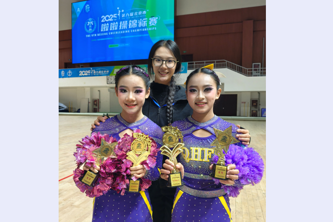 清华附中啦啦操队在于佳鸣老师的带领下,首次组队派出两名同学征战2025年北京市啦啦操锦标赛。学生以饱满的精神状态投入比赛,凭借默契的配合与稳定的发挥,在强手如林的赛场上脱颖而出,最终斩获双人花球自选第三名,并获评“优秀啦啦队长”称号,充分彰显了附中学子的竞技实力与综合素养。