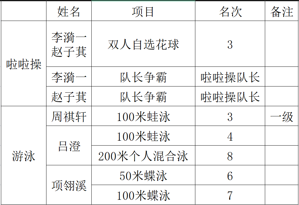 11月29日至30日,北京市啦啦操锦标赛和北京市中小学生游泳比赛分别在北京市燕山体育馆和北京市郡王府游泳馆举行。我校共派出两名啦啦操选手和六名游泳选手参赛。