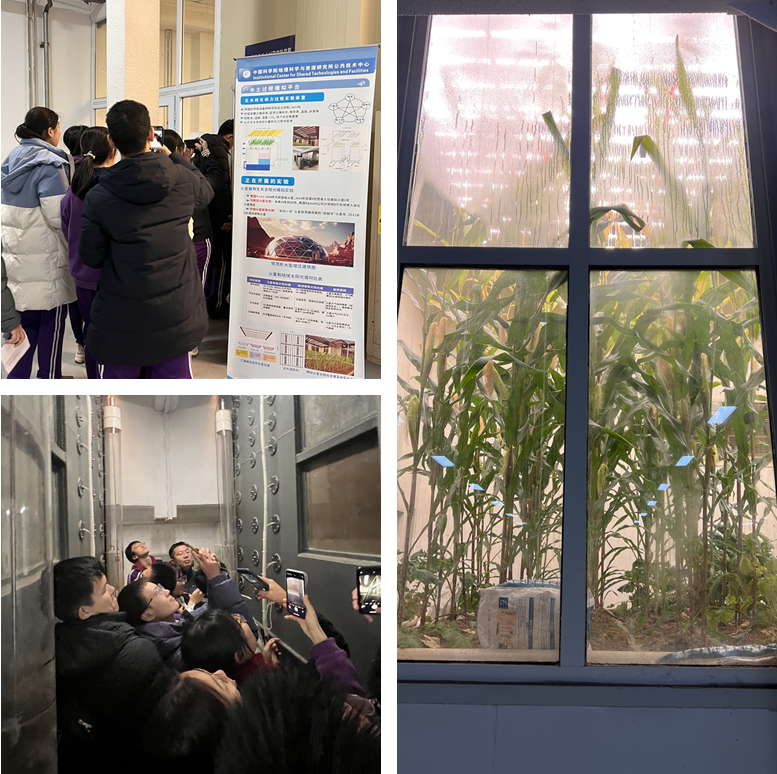 同学们参观火星玉米生长实验装置