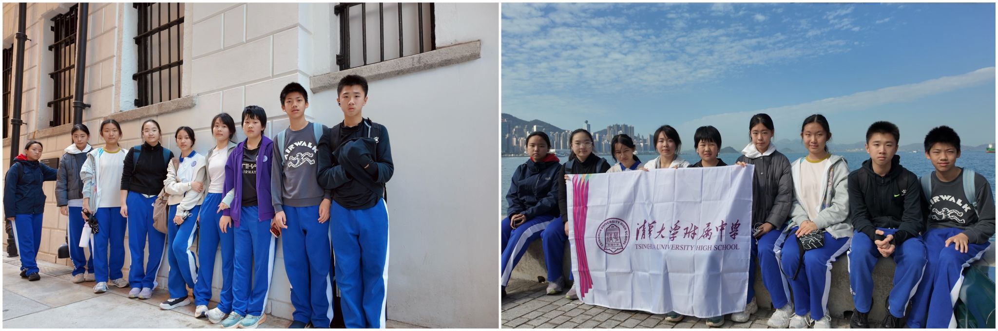 清华附中学生在香港大馆和九龙码头的合影