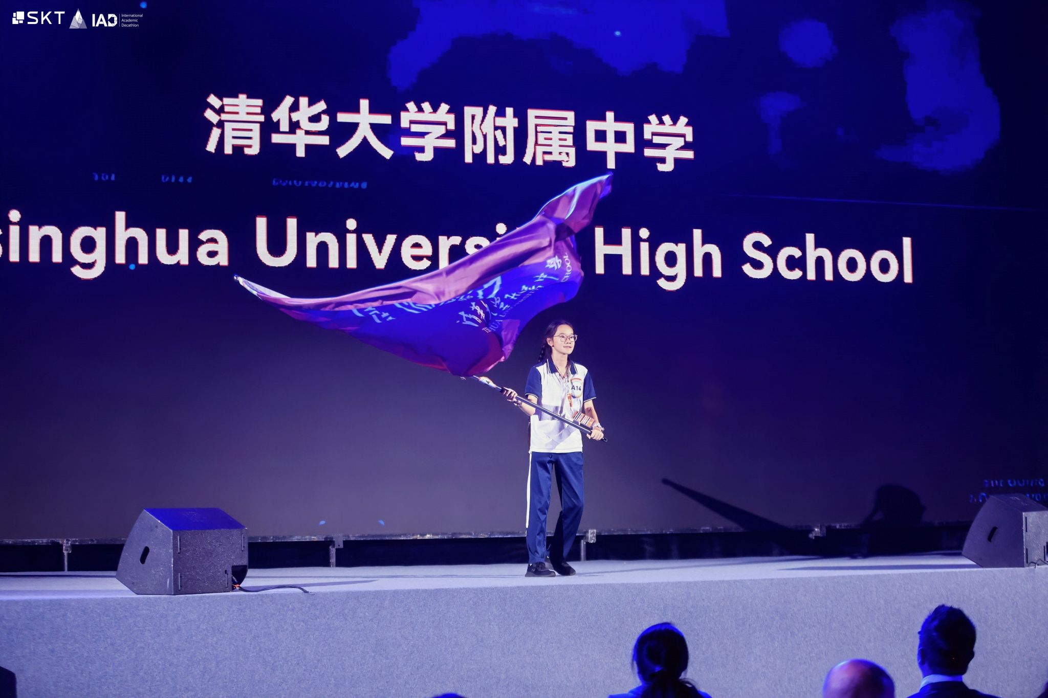 陈叶紫同学作为旗手挥舞清华附中校旗