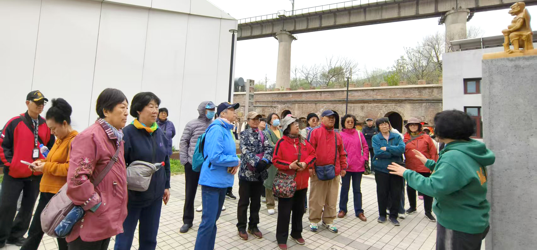 上午,老同志们抵达素有“皇家官窑”之称的琉璃渠文化产业园。这里上承辽金窑火,历经元、明、清三朝,是见证北京建都史的“活化石”。在讲述人的带领下,大家亲眼目睹了采用古法拼组而成的琉璃龙吻——这一镇守紫禁之巅的国之瑰宝。从“五行五色”的皇家规制到“瓦当滴水”的百姓智慧,大家深刻体悟到,琉璃不仅是色彩斑斓的建筑构件,更是凝固的中华文明基因。