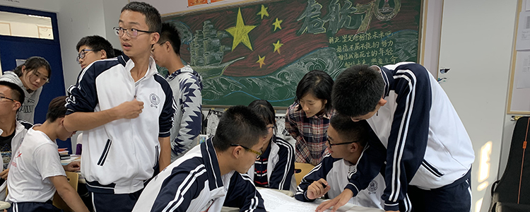 此外,还有的班级采取了分组讨论、比赛的方式。在知识竞答环节中,小组积分赛制激发了同学们的热情,将祖国70年的发展变化渗透到法律法规,政治政策,科技进步等各领域,同学们认真思考积极回答问题,爱国情怀通过平常生活的一点一滴得到体现。