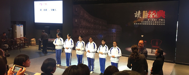 2019年10月19日上午,清华附中西园诗社6名同学,在周小玲老师带领下,参加了清华大学在新清华学堂八三实验剧场开展“读《论语》,学做人”主题交流活动。