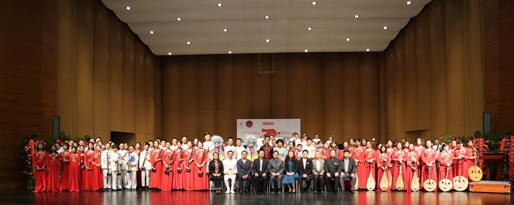 在第一部分“万众欢腾迎国庆”里,乐团在胡军老师的指挥下,为观众们演奏了描绘中国人民奋斗精神的《龙腾虎跃》、展现中国国粹精髓的《海岛冰轮初转腾》、极富京腔京韵的《大宅门写意•卢沟晓月》、民乐经典《瑶族舞曲》和充满节日欢乐气氛的《庆典序曲》等几首中国民乐传统经典作品,赢得了观众们一阵阵热烈的掌声。其中民乐版本的《海岛冰轮初转腾》一曲,原是胡军老师在2011年乐团赴金色大厅演出前,请教了梅葆玖大师后,专为民族乐团所作并于2015年在国家大剧院首演的一首乐团保留曲目,由乐团中曾获得“小梅花奖”和“国戏杯一等奖”的王董昱同学及乐团二胡演奏员王羽凝同学倾情演唱,为观众们展现了中国“非遗”传统文化的精髓。
