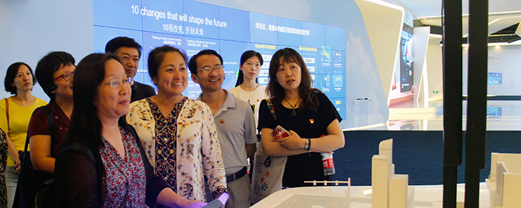 步入展厅伊始,巨型屏幕上的金句扑面而来,“让教师成为最伟大的职业,成为优秀青年的向往”、“基础研究与基础教育是产业诞生和振兴的根本”。老师们即刻体会到与巨人肩并肩的感动与召唤。随后,实践团全体成员逐一听取华为的核心价值观、发展历程、产品应用和解决方案等,观看最新产品的演示,体验最新开发的智慧校园、智慧家庭终端产品。“5G起航,引领未来”,一件件具体技术、具体应用案例让老师们充分感受到最前沿科技的力量。 “表情与行为双重课堂课程分析反馈应用”让老师们眼前一亮,纷纷驻足研究。前沿教育科技与实际工作的结合,让老师们对自己肩负的教育使命有了更深刻的认识。