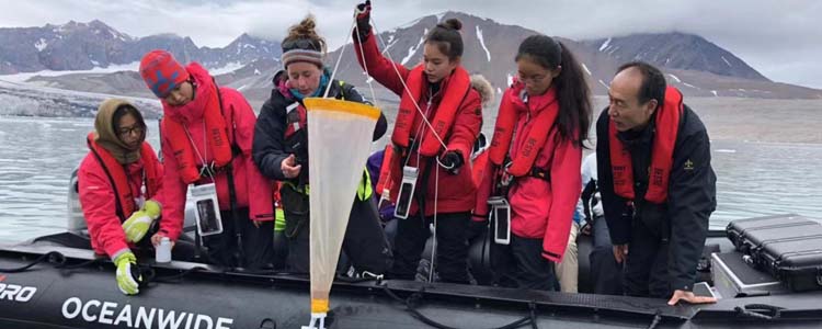 在专业极地探险队的带领下,同学们登陆苔原、巡游北冰洋,寻找极地动植物,每一次发现了曾在书上见到的动植物,同学们都激动不已;每一次发现了未知的动植物,同学们都积极求教于探险队员。