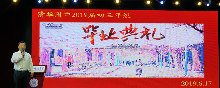 毕业典礼由初16级年级组长赵岩老师主持。典礼一开始,各班制作的视频带着大家回顾了过去三年成长历程。王殿军校长的发言鼓励同学们志存高远,努力做一名合格的清华附中人。