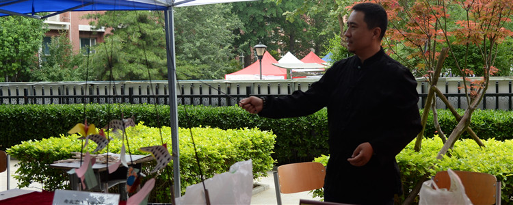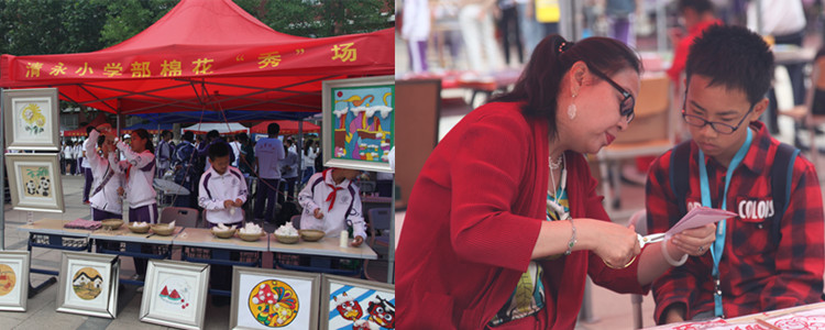 非物质文化遗产传统艺人工坊透过一件件精致的手工艺品,展现了中国传统文化中的典雅美。同时,一针一线织成的画扇,一笔一画勾勒的国彩,漫长历史流逝时间的凝重感于其中呼之欲出。在游览的过程中,学生与传统工艺"亲密接触",与非遗传承人共同交流对中国传统文化的认识,学习制作传统工艺品的技巧和要领。