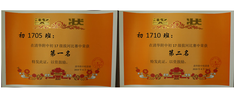 2019年4月2日,历时两周的清华附中初17级拔河比赛圆满收官。此次比赛由清华附中校团委、初17级年级组和初17级体育备课组协力组织举办。初17级全体师生共600余人参与了本次活动。