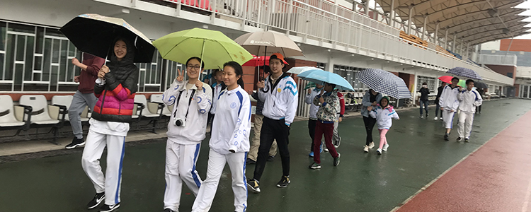 大约四点半,由班级五位同学带领天云中心的师生参观清华大学校园,这是本次微公益的第二项活动。活动过程中,初1502班的马贞元和李念萱同学,为天云中心的孩子们讲述清华大学的历史与文化。绵绵细雨中,孩子们撑伞漫步于清华园,感受清华独特的魅力与意蕴,留下了宝贵的合影。