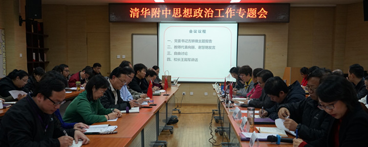 根据清华大学党委的部署,清华附中党委召开了此次全校性的思想政治工作会议,明确了新时期学校的思想政治工作任务,在全校营造全员全过程全方位育人的良好环境和氛围。 之后党委还将组织各党支部召开思想政治工作专题组织生活,行政各部门召开部门会议,学习贯彻落实清华大学和附中两级思想政治工作会议精神和要求,同时结合每一位教职工的岗位实际,探讨将思想政治工作融入教育教学全过程的有效举措,形成学校思想政治工作的有效合力,有力提升学校思想政治工作水平。