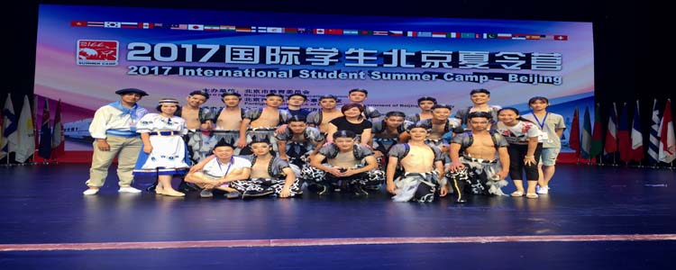 7月15日,“2017国际学生北京夏令营”在清华大学新清华学堂举行了盛大的开营仪式,清华附中“鸿雁”男生舞蹈团(以下简称”男团“)应北京市教委邀请,在开营式演出舞蹈《鸿雁》,展现了中国文化独特的魅力,受到来自世界各国营员们的热烈欢迎。本次演出阵容由第一代男团团长张致同同学和14名第二代男团团员组成。清华附中艺术教育办公室主任鞠红担任领队,男团指导教师吴宇峰和音乐教师贺晓宇、李墨随团指导。