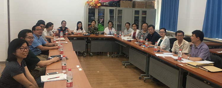 外语体育教研组联合党支部黄丽梅老师(左侧右1)介绍体育教研组党员基本情况