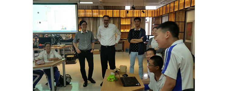 5月22日下午,Scratch创始人Mitchel Resnick教授参观清华附中创客空间,并和初一年级20余名小创客们进行互动、交流。清华附中科技办公室邱楠老师的陪同参观。