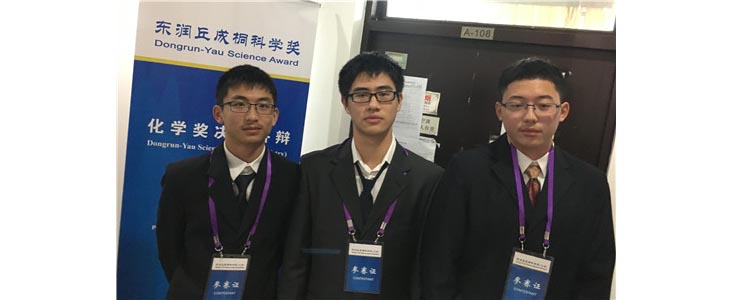 丘成桐科学奖化学,清华附中获得一个优胜奖,高1412班王盛卓、高1410班于世兴、胡晨旭三位同学的《双乳法合成PRG-PLGA包裹的磁性Fe3O4》(指导教师陈新福)。