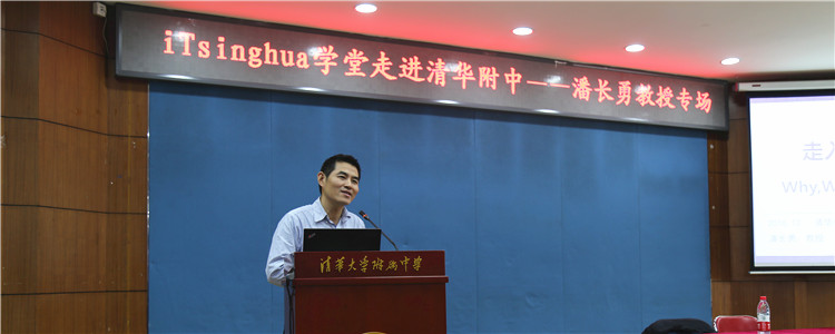 潘长勇教授为数字电视国家工程实验室(北京)副主任、中国电子学会会士,清华大学清华附中招生组长。本次讲座题目为《走入清华大学,Why,What,How,When》,讲座内容精彩,语言风趣,赢得了在场学生及家长的兴趣和热情。讲座共有三部分内容,第一,怎样的清华大学在等待你?《我在清华等你来》的视频带领大家走入清华大学,经历了百年风雨、百年辉煌的清华大学正在向“更创新、更国际、更人文”的方向发展。第二,在清华,你能获得什么?在清华大学学生能够获得世界一流的专业教育,清华有世界一流的学科群,学生能获得自主选择、多样成长的空间。第三,怎样才能进入清华大学?进入清华大学的途径在全国范围内达十种之多。针对清华附中学生的背景及特点,潘长勇教授重点介绍了清华自主选拔体系中的领军人才选拔和自主招生两种招生方式,对两种方式的招生条件、认定办法等相关政策进行了详细说明。讲座结束后,潘长勇教授与学生、家长再次就疑问进行了互动。