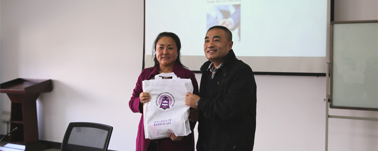 方妍书记(左)向苗齐田副总裁赠送清华附中纪念品以示感谢