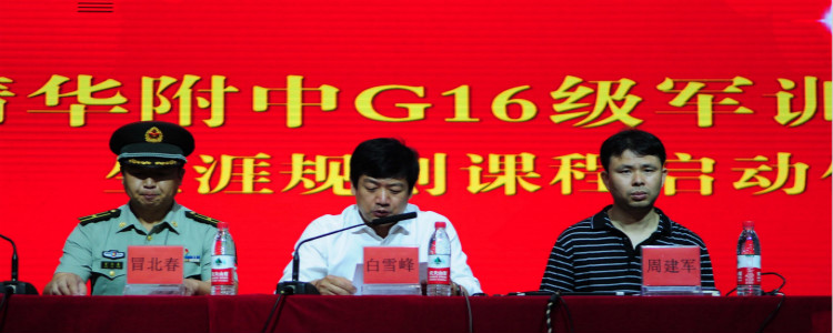 首先,白雪峰副校长致辞,欢迎新同学来到清华附中,鼓励同学们通过军训的机会磨砺意志、养成优良作风,为高中学习生活打好基础。