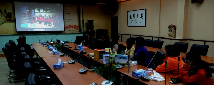 同志们一起观看支教师生拍摄的小视频《走进芽坪小学》