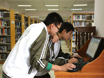 北大图书馆刘亚琼老师在给同学们做讲解 同学们在北大图书馆检索图书