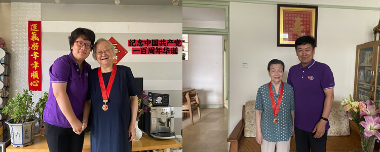 清华附中共有27名老党员荣获纪念章。“七一”前夕,附中党委委员和党员领导干部分别上门慰问不能到现场参加仪式的老党员,并将纪念章颁发给老党员。领到纪念章后老党员们激动不已,当场佩戴纪念章留影。93岁高龄的离退休干部张秀真老师认真地阅读纪念章的寓意说明。还有几位卧床的老同志也将纪念章紧紧得握在手中,仔细端详。卧床多年的老党员孙振民老师在收到纪念章后,特别让家属记下心声:“作为一名老党员,我感觉非常光荣和自豪,我虽然年迈身残,但共产党人的初心不改。感谢党多年的培养,感谢国家关照,让我过上老有所养,老有所乐的幸福生活。衷心祝愿我们的党和国家更加繁荣昌盛,国泰民安。”