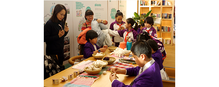启动仪式后,与会的领导嘉宾、教师、学生和家长们被清华附中永丰学校小学部学生们的作品深深吸引,纷纷对棉花相关的织、纺乐趣进行了亲自体验。