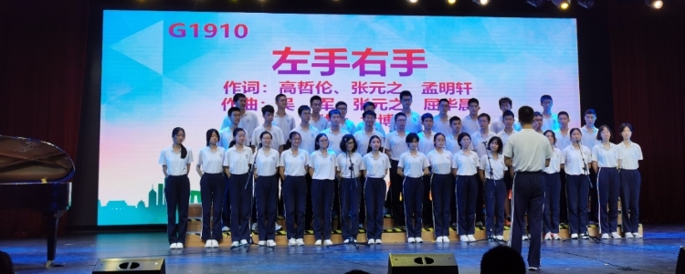 活动的后半段是“歌以言志”合唱比赛,音乐教研组王金峰老师、周鹭以及年级副组长周喆老师承担评委工作。此次活动主题为“歌以言志”,每个班都表演了精心准备的自创歌曲合唱,以表达对即将到来的高三生活的期冀和决心。各班不仅歌声悠扬,更是在节目中融入了舞蹈、说唱、朗诵等多种表现形式和钢琴、吉他、唢呐等多种乐器,将现场气氛一次次推向高潮。同学们在歌声里诉说了对青春的理解,表达了未来努力的决心。最后,全场各班学生分别与新任班主任上台合影,正式揭开高三生活的序幕,共同迈向这一段为梦想全力以赴的新征程。