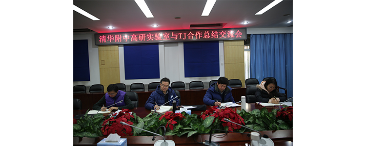 2018年1月9日,清华附中与美国托马斯·杰弗逊中学(Thomas Jefferson School,简称TJ)合作共建的高研实验室总结交流会在B102会议室召开。校长王殿军,副校长白雪峰,学生发展中心副主任王田,高研实验室主任邱楠,各实验室负责人共11人参加会议。副校长白雪峰主持会议。
