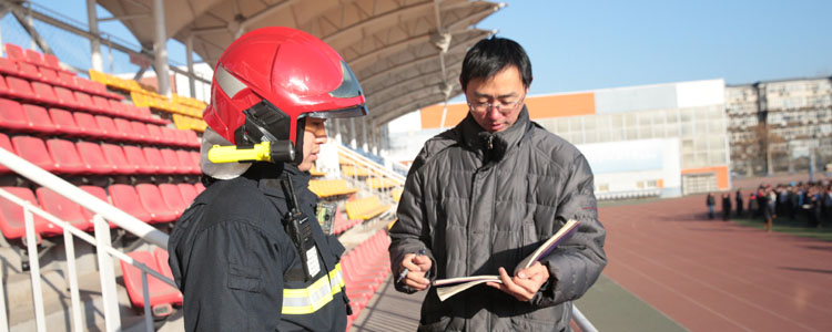消防中队队长首先肯定了同学们在疏散过程中保持了安全良好的秩序和较快的反映能力,同时也指出通过这次演习暴露出一些问题,如部分学生在思想上不够重视,演习没有危机感,疏散时没有做到“猫腰”、“捂嘴”等准确逃生动作,这些问题都需要在以后的演习中加以注意并改正。