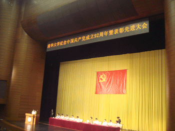 6月28日下午,清华大学庆祝中国共产党建党92周年暨七一表彰大会在新清华学堂召开。清华附中理化生技联合党支部被评为“清华大学先进党支部”;王殿军校长获得“清华大学优秀共产党员”称号;王田老师获得“清华大学优秀党建与思想政治工作者”称号。清华附中高10级学生党员曲雪琪和魏勐同学作为新党员代表参加集体入党宣誓活动。