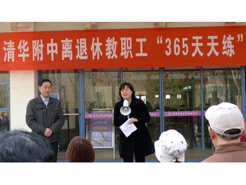 阳光明媚、大地回春。3月26日上午,2012年清华附中离退休教职工“365天天练”活动启动仪式在离退休处举行。清华大学离退休处处长刘秀成、清华附中离退休工作领导小组组长、党委副书记周兆玉出席启动仪式并讲话。启动仪式后,老同志们在校园里迈开大步集体行走,“365天天练”本学期活动开始。