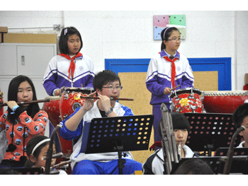 3月29日下午,均具有“北京市学生金帆艺术团称号”的清华附中民乐团的60多名同学与清华附小吹打乐团的25名同学,在胡军老师的指挥下,排练并合奏中华名曲《龙腾虎跃》,顺利通过海淀区教委对此次艺术展演节目的审查。