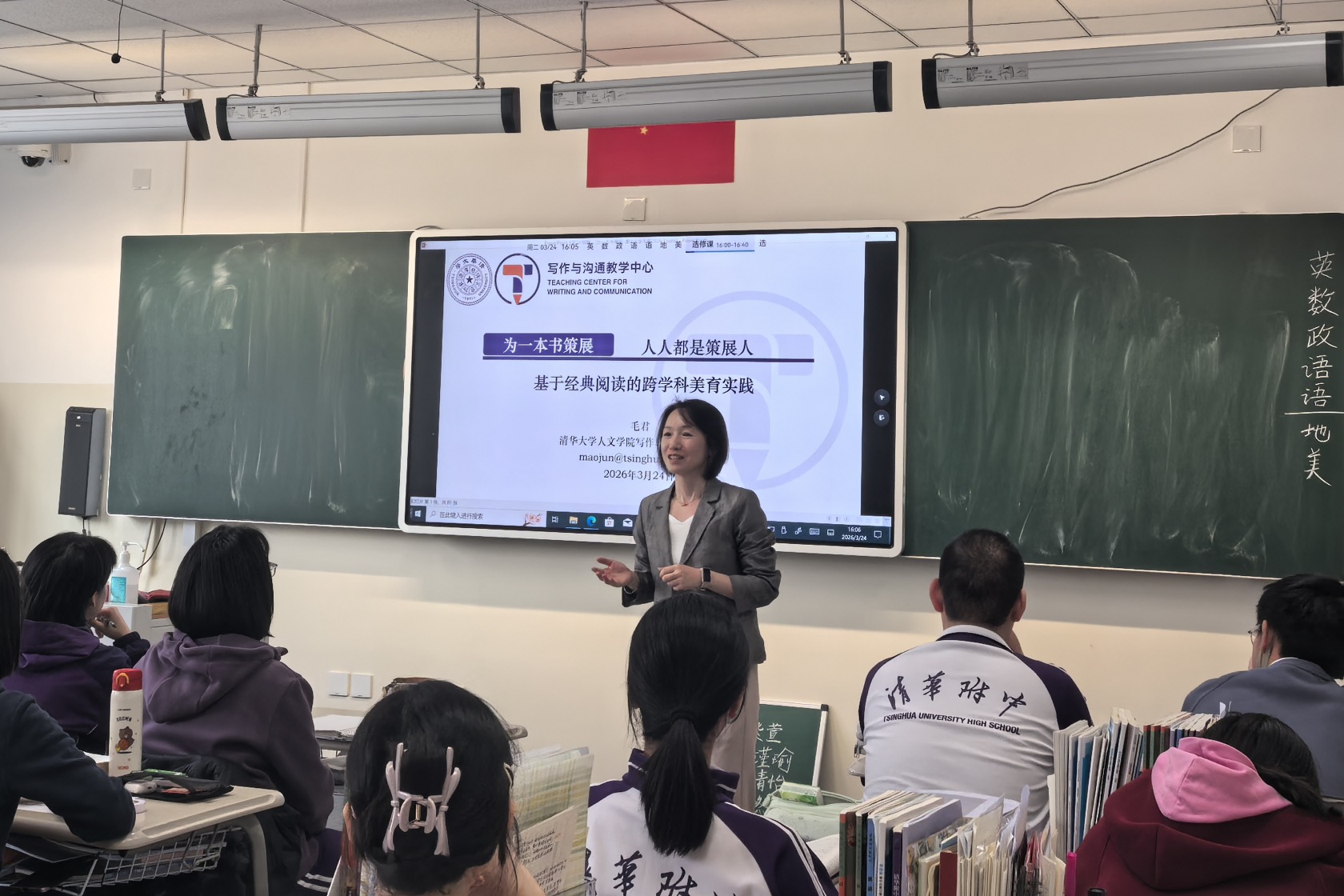 为丰富《人间词话》选修课学习维度,搭建经典文学与实践表达的桥梁,3月24日,清华大学写作与沟通教学中心毛君老师走进清华附中,为高二学子带来“人人都是策展人——基于经典阅读的跨学科美育实践”主题讲座,引导同学们以“策展”的全新视角挖掘古典文论的文化内涵与审美价值。