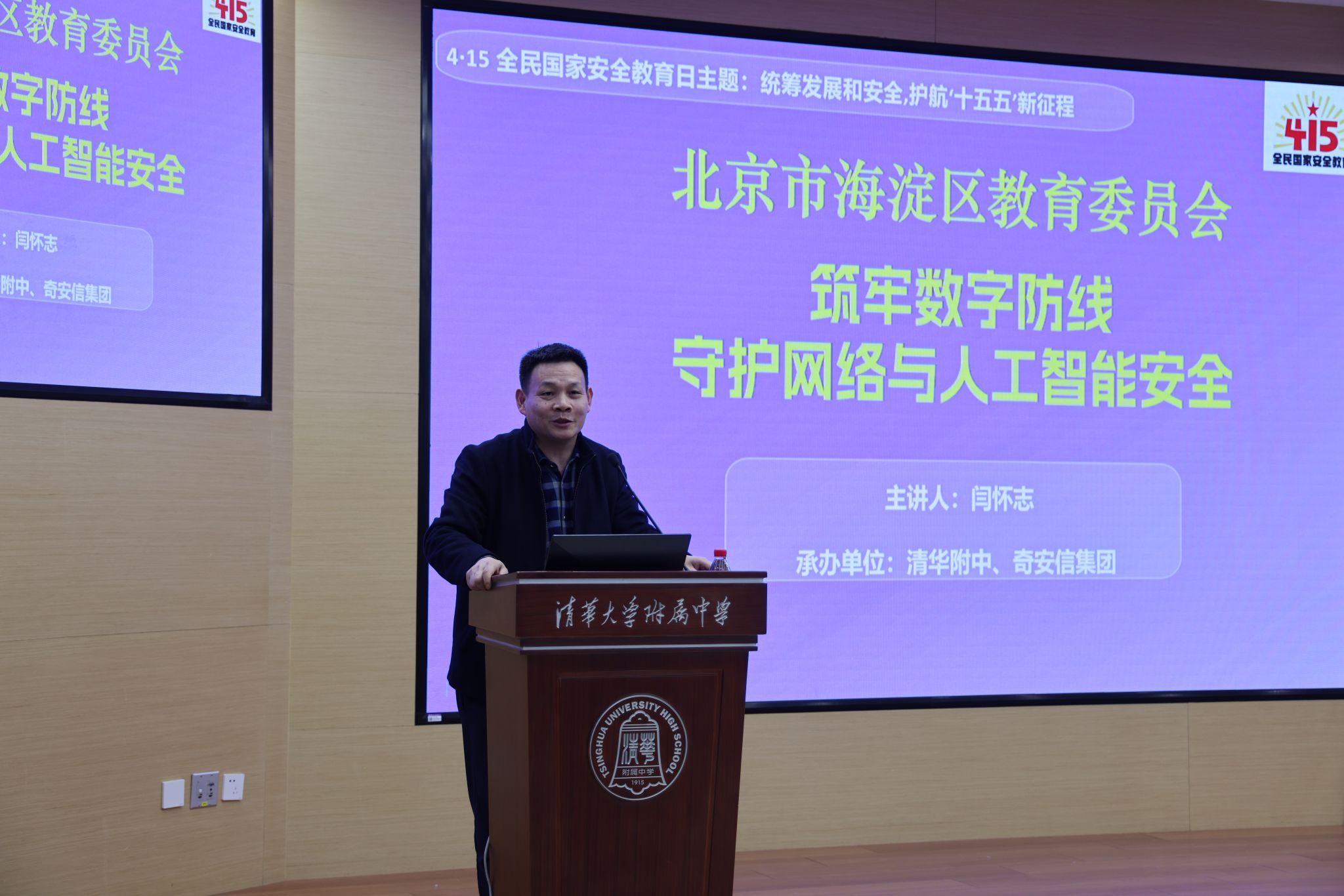 2026年4月15日是第十一个全民国家安全教育日,由北京市海淀区教育委员会主办,清华附中承办的“院士专家进校园”国家安全教育主题活动,在清华附中华茂楼B208会议室顺利举行。本次活动以网络安全与人工智能安全为核心聚焦点,紧扣总体国家安全观要求,旨在引导广大师生牢固树立国家安全意识,提升安全防范能力与自我保护素养,筑牢校园安全防线。