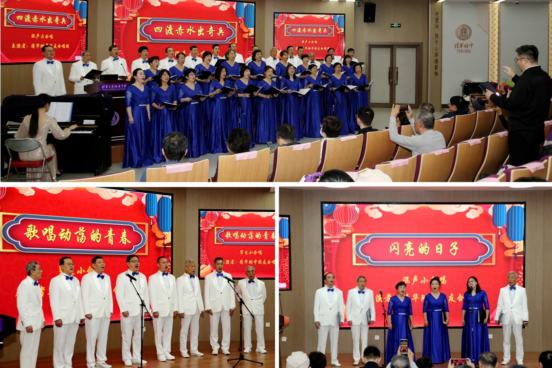 在文艺演出环节,清华附中校友合唱团及校友们带来了精彩纷呈的表演,为团拜会画上了圆满的句号。沈波校友朗诵《沁园春·雪》纪念毛泽东130周年诞辰,激昂文字引领人们重温历史壮志。王卫宁校友的西班牙弗拉门戈披肩舞、张湛校友、陈新校友的独唱都赢得了热烈掌声,几首小合唱更是勾起大家的童年回忆。最后,全场齐唱清华附中校歌,共忆母校生活。