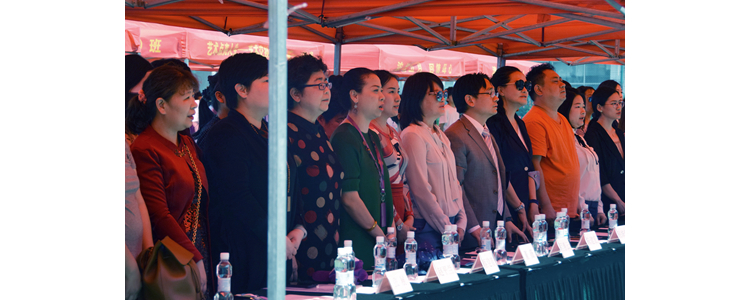 初三6班龙腾云、初三8班刘一霖、高一5班王宇杰、高二2班李文榕担任主持人。表彰大会伊始,全体师生奏唱国歌。