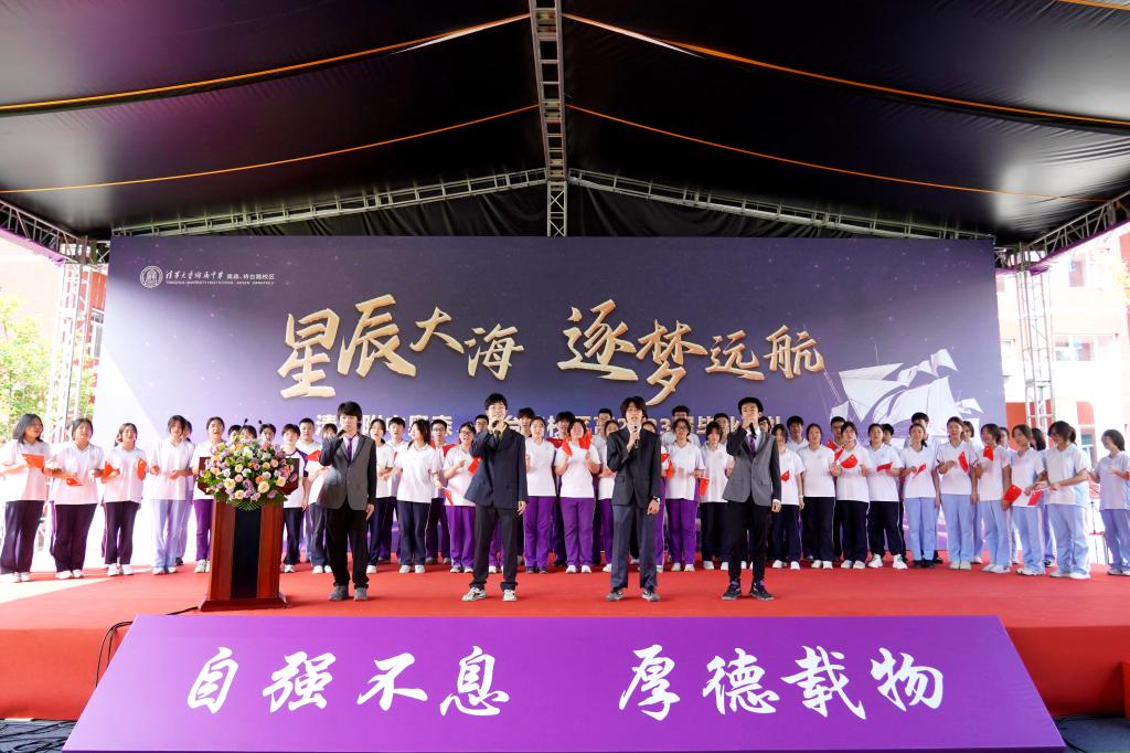 执行校长朱建宏向毕业生深情寄语,希望同学们做一个真诚善良的人,牢记“无体育 不清华”的精神,勉励同学们秉承母校的优良传统,勇敢面对未来,从容应对挑战,在人生的舞台上收获辉煌的成就。