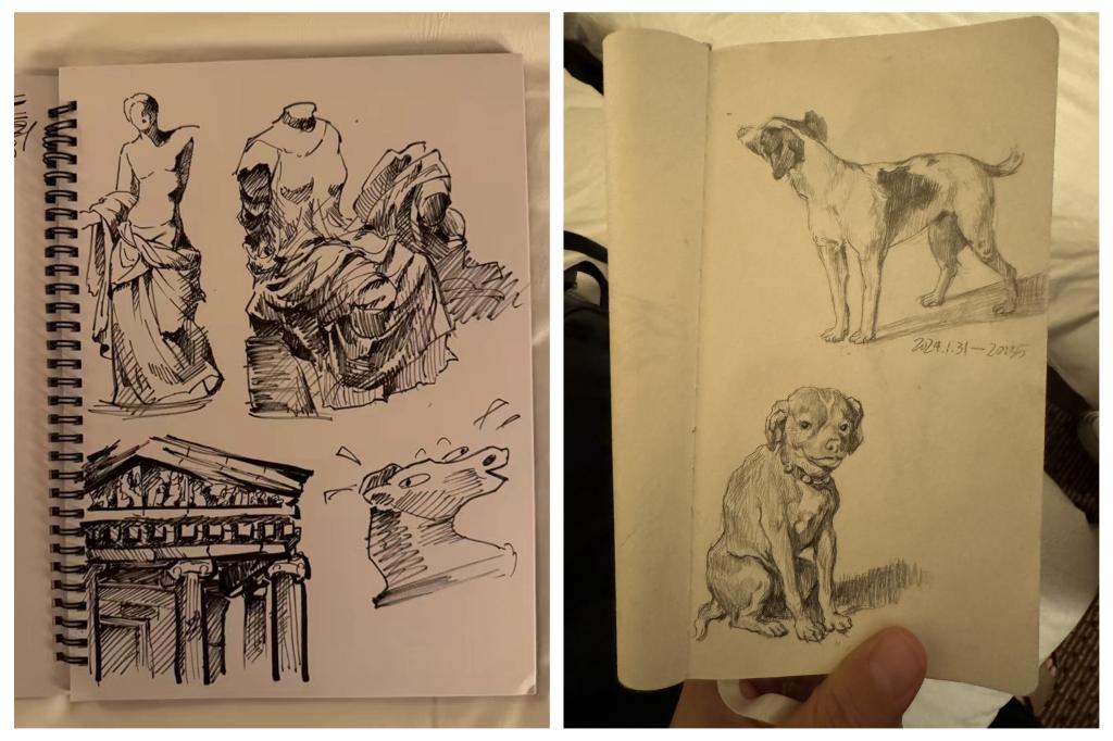 在美术馆的参观过程中,学生们会随时拿起画笔记录当下的灵感与创作,并纷纷表示,仿佛走进了一个艺术的时间长廊,在这里汲取的知识需要慢慢消化吸收,如果有机会,一定要再来现场学习和观摩。