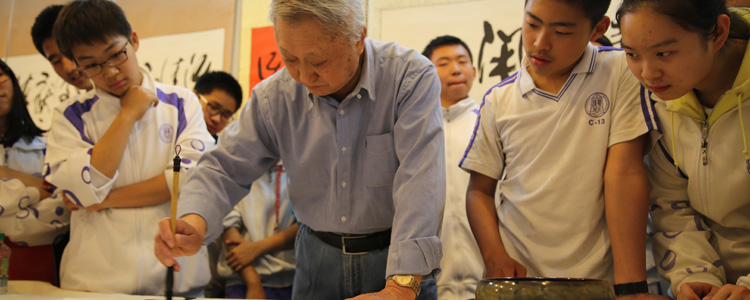 4月21日下午,清华附中组织部分学生参观了正在清华大学老年学研究中心(熊知行楼)举办的韩家鳌书法作品展。此次观展活动得到了学生发展中心主任郎艳和美术组教师吴雅蒂的大力支持。清华附中前校长韩家鳌在百年校庆办公室主任孙大鹏的陪同下来到现场,与学生们进行了饶有趣味的互动。现场气氛十分热烈,在交流之中,同学们上了一堂生动活泼的书法文化课!